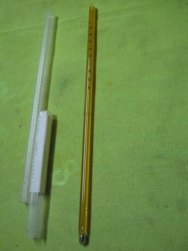 Thermometers mercury in glass. Yellow backed