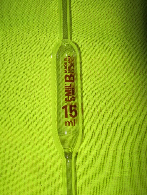 پیپت شیشه ای حبابدار ( پیپت ژوژه) 15 میلی لیتری کلاس B مارک E-MIL ساخت انگلستان